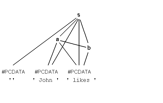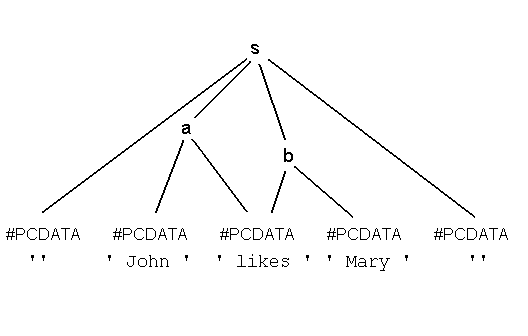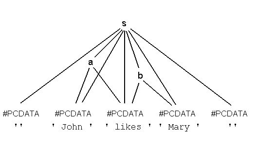 <s/<a/ John <b/ likes /a> Mary /b>/s>we will process, in turn, eleven segments: