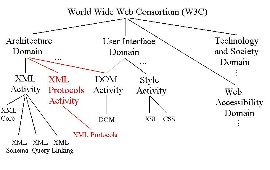 - organization of XML activities in W3C
